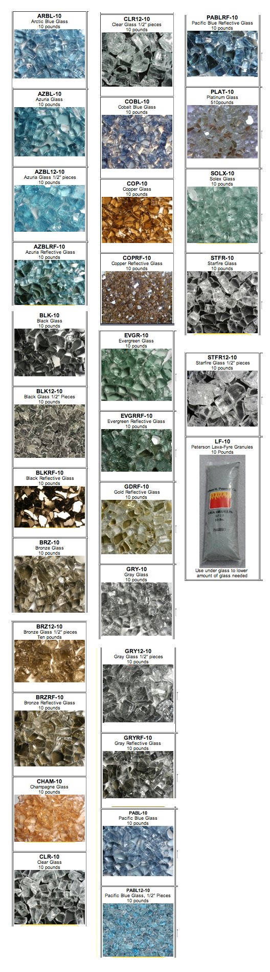 It's the hottest thing - and the coolest - at the same time! Replace those old gas logs with American Fireglass, and put intrigue and magic in your natural gas fireplace. Stop guests in their tracks with a truly unique look that is sure to be the center of attention. Whether your decor is contemporary, classic, rustic or somewhere in between, American Fireglass provides uncompromising versatility. The multitude of colors and size options allows you to create your own custom look. The glass is tempered for long-term heat consumption. Thanks to the process used in creating the glass, it burns cleaner and more efficiently than conventional gas logs. It will not melt, degrade, or emit toxic fumes. (This refers to the glass itself. You are still required to have your damper open when burning!) The Fireglass will last virtually a lifetime. There is no soot, no ash and no smoke. With no popping embers to worry about, you can even remove those screens and glass doors that hinder your view. Then watch the colors dance! Now if you think this looks good in your fireplace, it is a show-stopper in an outdoor fire pit or as a decorative feature in your patio landscape. The tumbling and polishing process used to create the Fireglass ensures that there are no sharp edges to cut you and almost anyone can install it. Simply remove those old gas logs and clean out your fireplace. Wipe the surfaces clean with a dry cloth to remove any dust. Check your burner to make sure it is in proper working order and you're ready to fill. The options are endless! An average fireplace will take between 50 and 75 lbs of glass. Using lava rock as a filler, you can cut down on the amount of glass needed and give you the same look. However, if you want to change the color for a party or on holidays, an all-glass installation is best. We suggest placing a 2"- 3" thick layer of Fireglass to get the Proper flame. |