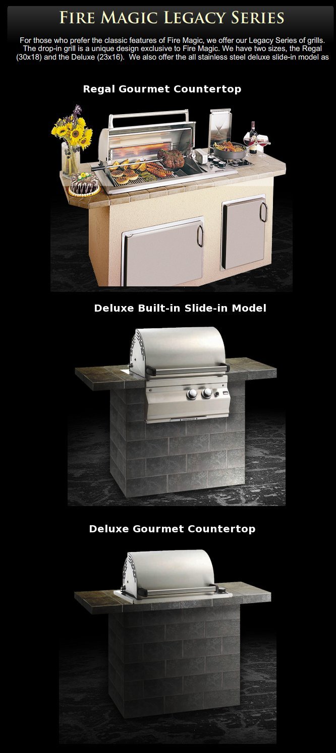 JNR4 - MPP 523 total square inches of cooking surface; castaluminum grill housing; stainless steel burner system, stainless steel cookinggrids, NuStone side shelf; patio/deck mount or in-ground mount. This grill can be outfitted with a portable mount for natural gas. |